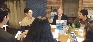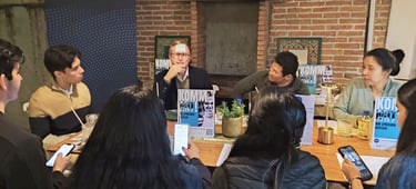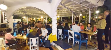 Cuando llegamos a la cafetería, ¡ya había una persona esperando! Un autodidacta, con una sonrisa que decía todo: estaba motivado de estar ahí. Ese fue nuestro primer respiro. Poco antes de las 7 pm nos sentamos y empezamos a conversar y, minutos después, fueron llegando más. Gente de diferentes edades, y procedencia como de Bolivia, Perú, Colombia. Cada uno traía su propia historia, su propia razón para estar ahí esa noche.