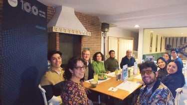 La Cafetería Casa del Prado nos dio el espacio perfecto. Tenían la mesa lista, trajeron más sillas cuando hizo falta, la comida estuvo deliciosa. Lo mejor es la terraza frente al jardín y todas esas plantas, con una luz cálida que invita a un ambiente relajado. Es de esos lugares encantadores donde puedes conversar tranquilo y nadie te mira por probar palabras en otro idioma.