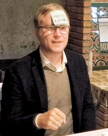 Al principio, todos estaban un poco tímidos y nerviosos. Muchos compartían la misma inquietud: "Solo sé unas cuantas palabras en alemán", queriendo participar, pero sin saber cómo dar el primer paso. Entonces Nils, como creador del método del Club de conversación (que fue tan querido en Costa Rica), buscó innovar para esta nueva etapa en San Luis Potosí. Pensando en cómo ayudar a los más tímidos a "salir del cascarón", usó su ingenio para idear una actividad del estilo relajado del Club, y propuso su propia versión de un juego de su infancia llamado "Wer bin ich?" (¿Quién soy yo?).