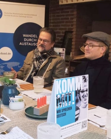 El Club de conversación en Alemán KOMM MIT! Wir sprechen Deutsch fue fundado por Nils Schulz en marzo de 2024 en San José, Costa Rica, durante su etapa como Lector del DAAD en ese país. Lo que comenzó como un pequeño grupo se transformó, a lo largo de 12 encuentros exitosos, en una verdadera comunidad.
