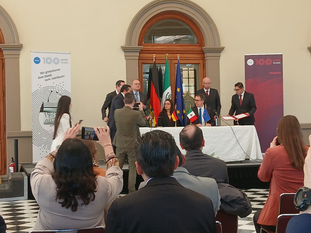 La magnitud del evento reflejó la importancia de la ocasión: recibir en suelo mexicano al Dr. Kai Sicks, Secretario General del DAAD, quien viajó especialmente desde la oficina central del DAAD en Bonn, Alemania, para presidir esta celebración histórica del centenario.