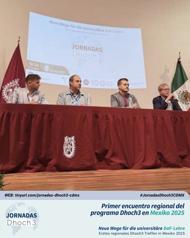 Dió un paso aún mayor en su labor como Embajador Dhoch3 y junto con otros tres lectores del DAAD, unieron fuerzas para crear el primer evento regional especializado en Dhoch3, para reunir a más de 50 docentes universitarios de alemán provenientes de México, Centroamérica y el Caribe.