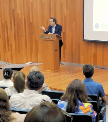 El 16 de octubre, el Centro de Emprendimiento e Innovación Universitaria de la Universidad Autónoma de San Luis Potosí (UASLP) fue sede de la conferencia inaugural del Lector del DAAD, Nils Hinnerk Schulz, titulada “México abierto al mundo: una perspectiva alemana sobre migración y cultura”.