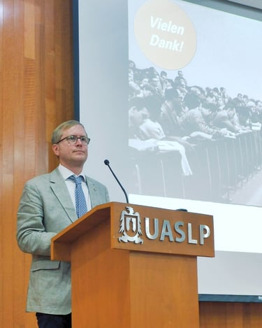 Con esta conferencia, la UASLP reafirma su compromiso con la internacionalización del conocimiento y con el impulso a proyectos que promueven el diálogo entre culturas, un objetivo compartido por el DAAD y por su nuevo Lector del DAAD en San Luis Potosí.
