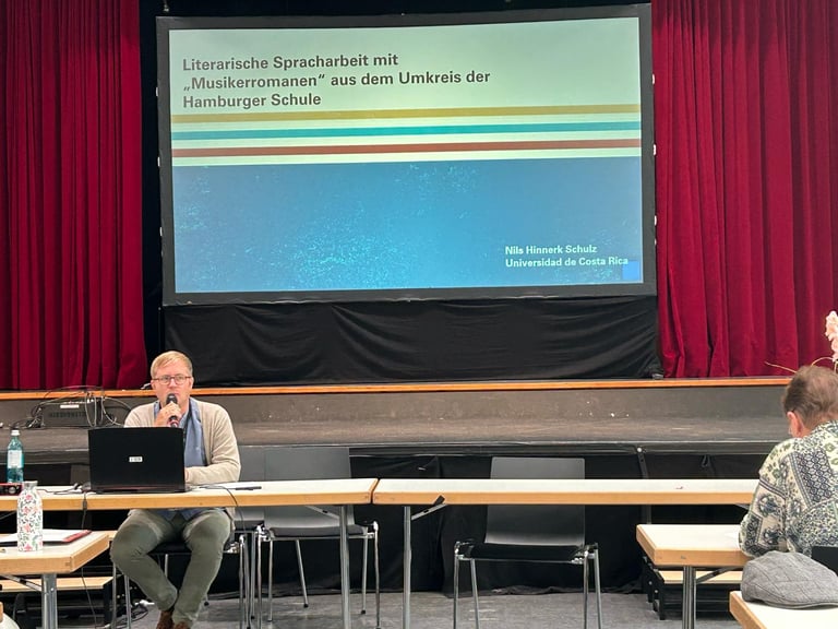 “Literarische Spracharbeit mit ‚Musikerromanen‘ aus dem Umkreis der Hamburger Schule” (Trabajo lingüístico-literario con 'novelas de músicos' del entorno de la Escuela de Hamburgo)
