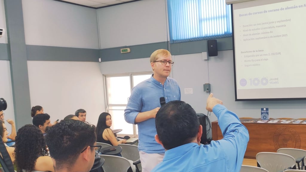 La presentación de Nils Hinnerk Schulz brindó una visión detallada y motivadora del panorama académico alemán, abarcando desde programas de posgrado hasta las prometedoras líneas de investigación. La transmisión en vivo a través de las redes sociales de la sede garantizó que la información alcanzara a un público aún mayor en otras localidades.