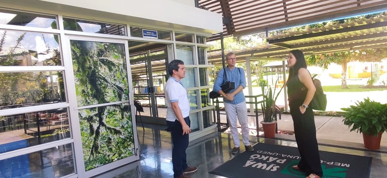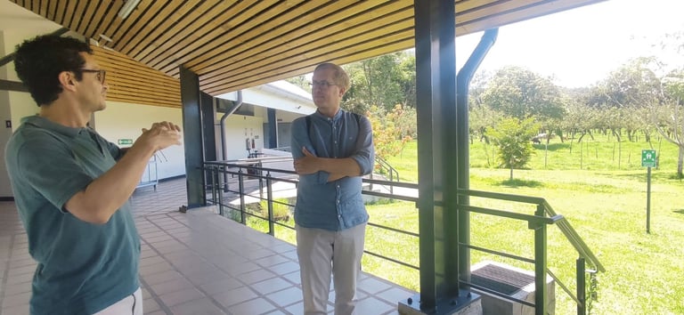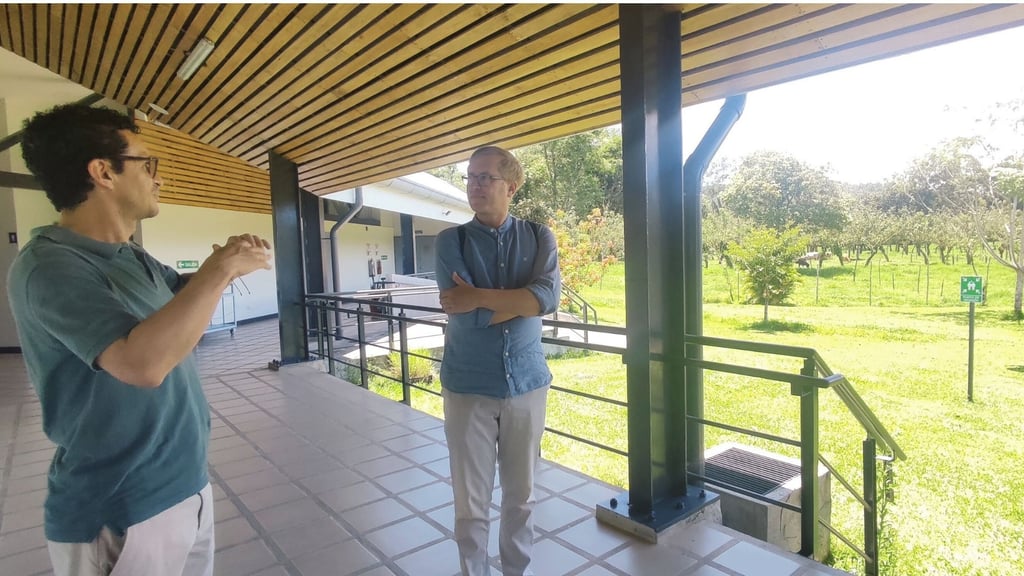 La visita del Lector Schulz trascendió la presentación formal y se adentró en el corazón académico de la Sede del Atlántico (UCR) en Turrialba. Acompañado por los anfitriones María Fernanda Herrera y Diego Aguirre, el recorrido por las instalaciones ofreció una perspectiva interesante de la labor de investigación y enseñanza que se lleva a cabo en esta institución pluridisciplinaria.
