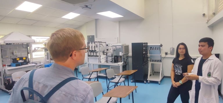 Se visitaron diversos laboratorios, donde profesores y estudiantes compartieron con entusiasmo los proyectos de investigación en curso, explicando sus objetivos, metodologías y el impacto potencial de sus descubrimientos, evidenciando un ambiente de aprendizaje estimulante y colaborativo.