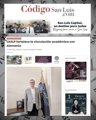 El pasado 25 de septiembre, el histórico Edificio Central de la Universidad Autónoma de San Luis Potosí (UASLP) fue escenario de un momento significativo para la comunidad universitaria y para las relaciones académico-culturales entre San Luis Potosí y Alemania.