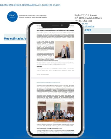 La importancia del acontecimiento trascendió también el ámbito administrativo: el DAAD México, sede principal del DAAD para la región y responsable también de países en Centroamérica (como Costa Rica) y el Caribe, incluyó una nota especial en su boletín mensual, donde celebró la incorporación oficial de Nils Schulz a la UASLP. En el artículo, se destacó su paso previo como Lector del DAAD en Costa Rica y su nuevo nombramiento en la Facultad de Ingeniería de la Universidad Autónoma de San Luis Potosí, resaltando la continuidad de su labor como promotor del idioma y la cultura alemana.