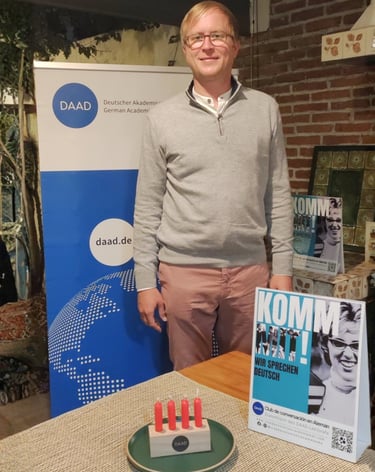 Una reunión casi privada donde un Adventskerzen (velas de Adviento) enviadas por el DAAD, abrió preguntas, historias y conversaciones reales sobre tradiciones alemanas de Navidad y más práctica del idioma alemán.